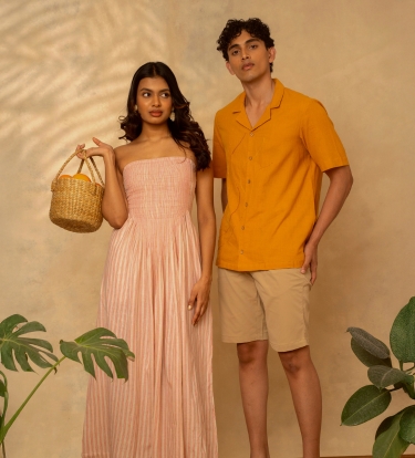 A shirt that carries the glow of golden hour—Saanjh is naturally dyed in a warm turmeric shade and handwoven in soft, breathable cotton.